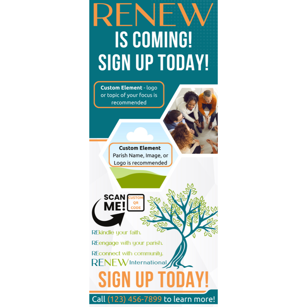 Purchase this RENEW banner to display at your parish and advertise the RENEW experience!  Encourage parishioners to join small groups and get the community excited!